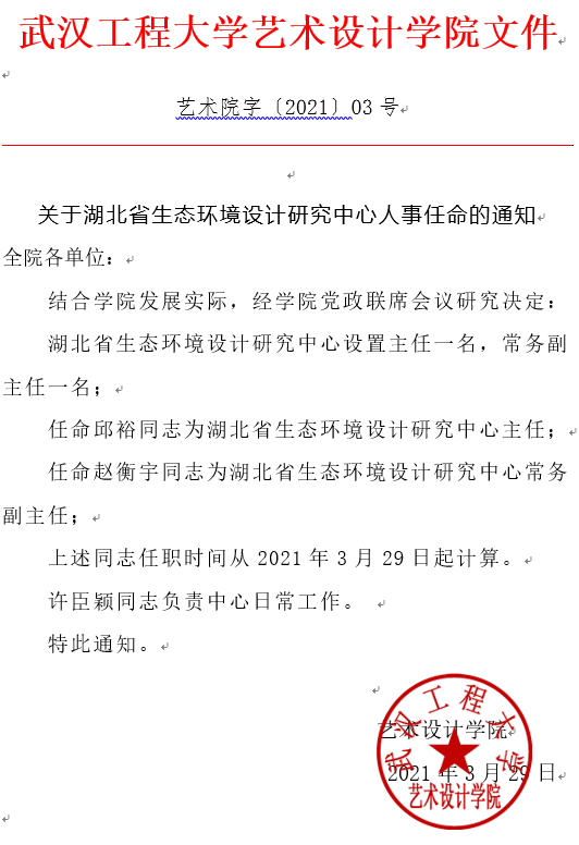 关于湖北省生态环境设计研究中心人事任命的通知