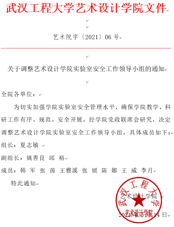关于调整304am永利实验室安全工作领导小组的通知