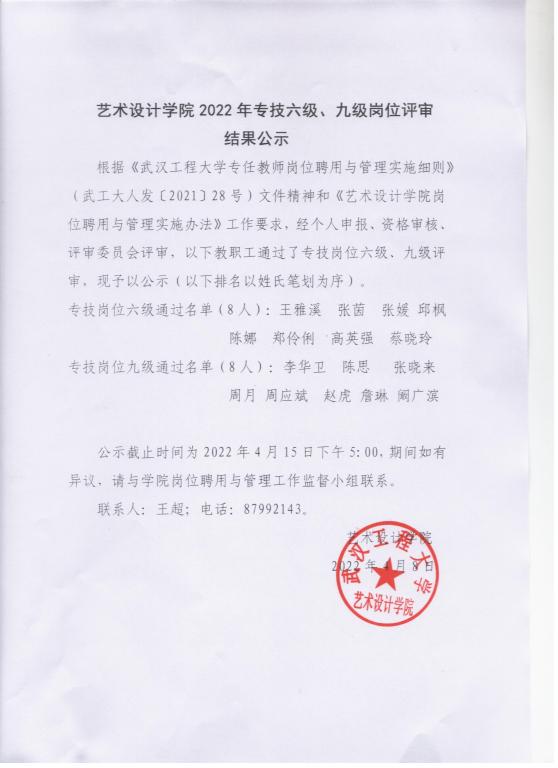 2022年专技六级、九级岗位评审结果公示