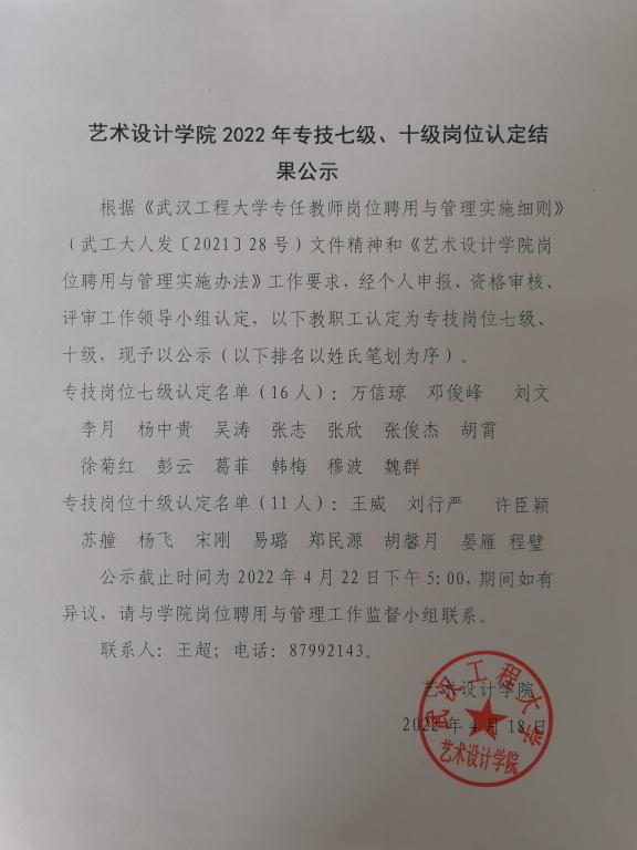 2022年专技七级、十级岗位认定结果公示
