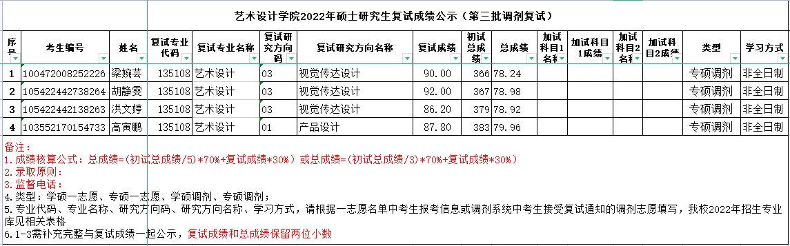 2022年硕士研究生复试成绩公示(第三批调剂复试)