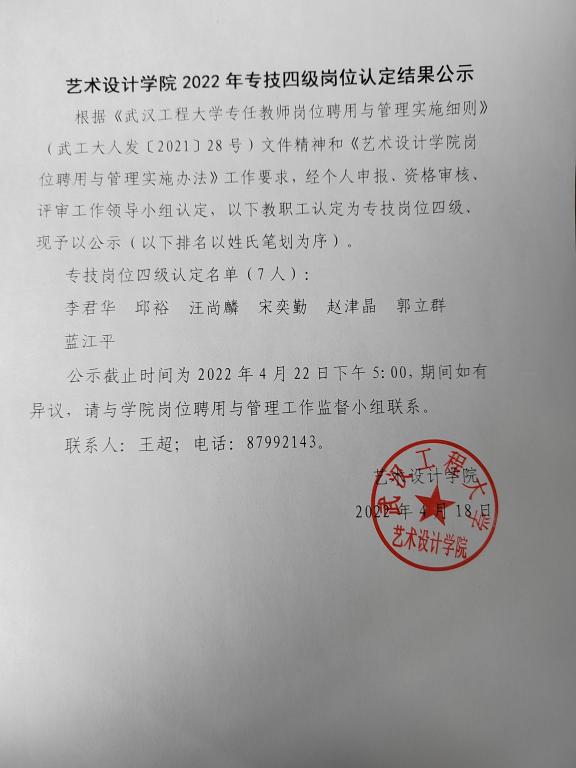 2022年专技四级岗位认定结果公示