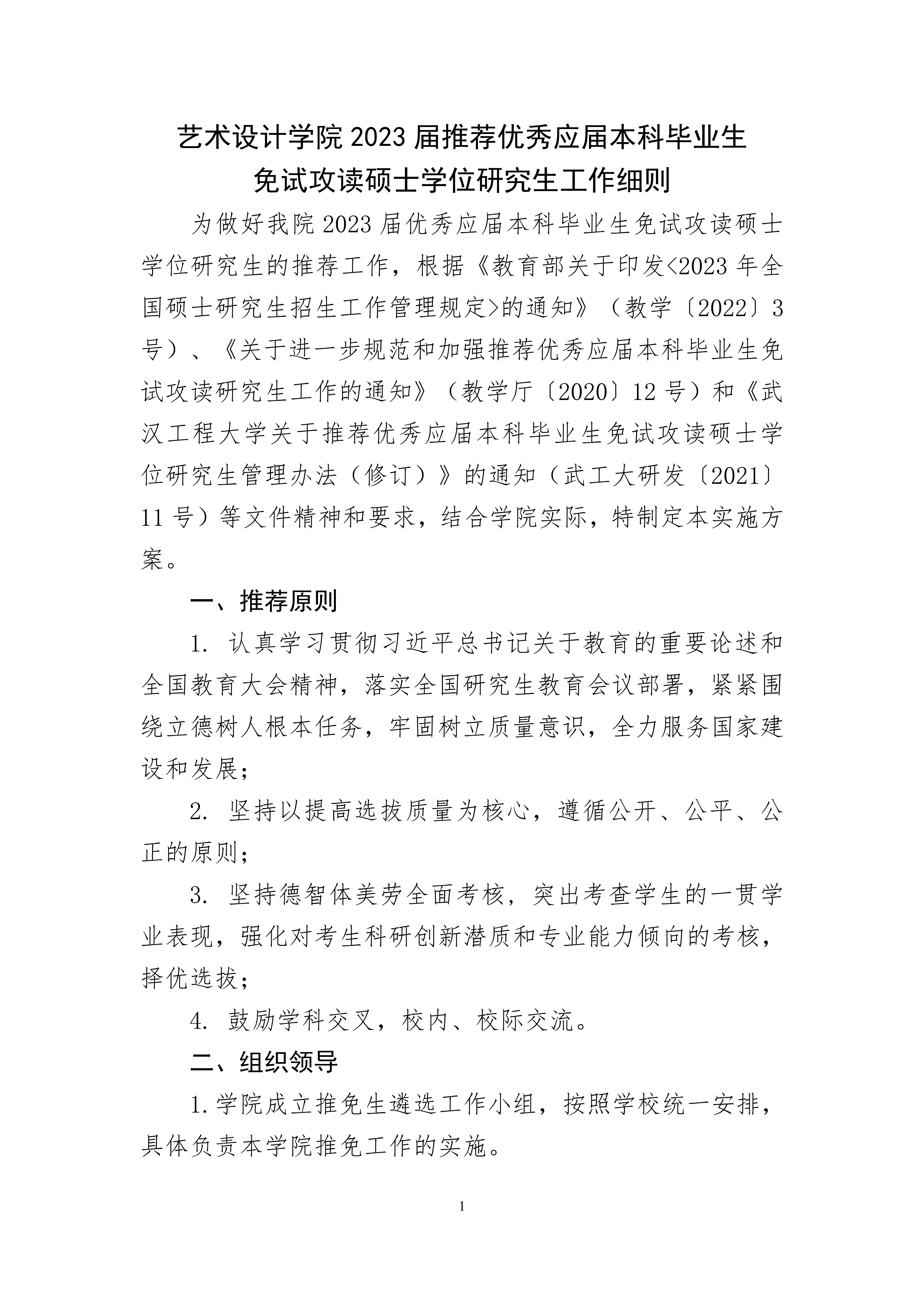 2023届推荐优秀应届本科毕业生免试攻读硕士学位研究生工作细则