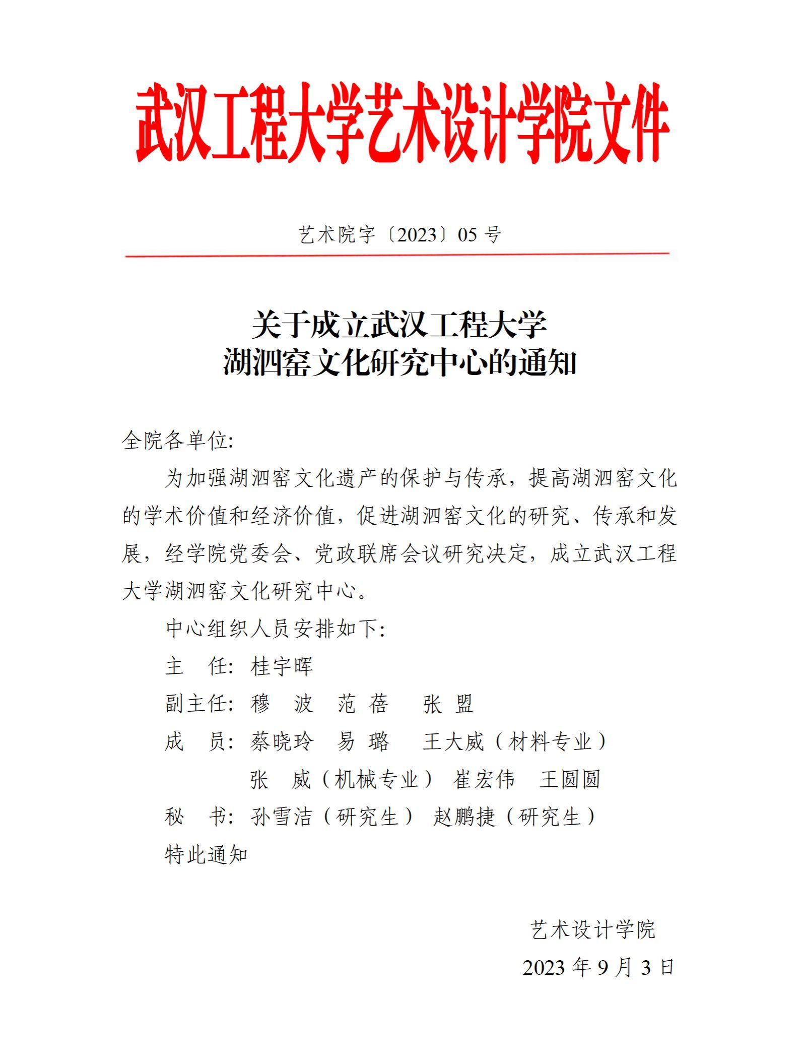 关于成立304am永利湖泗窑文化研究中心的通知