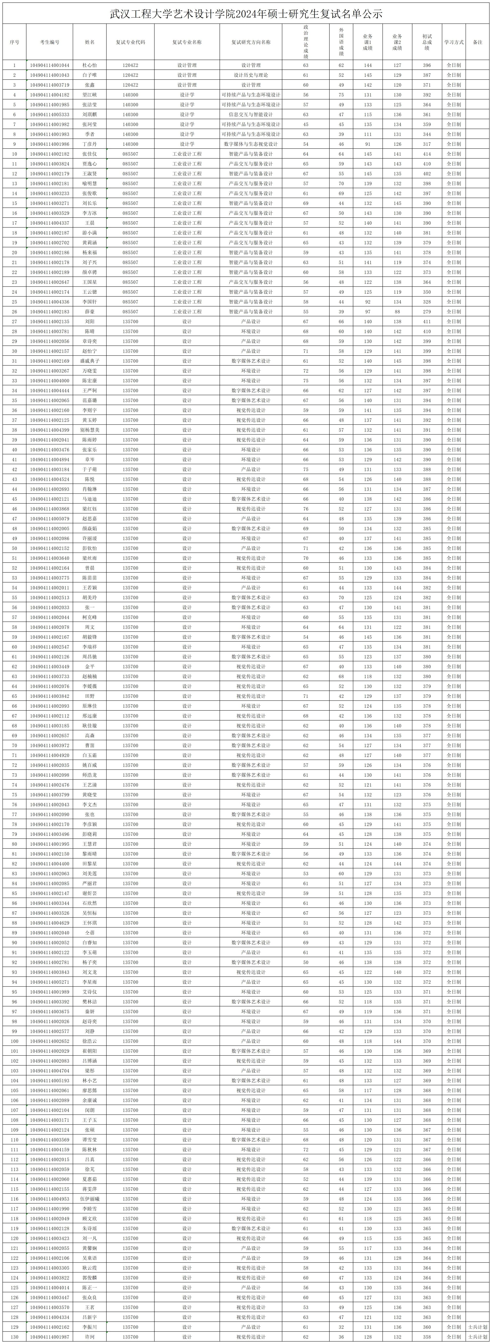 2024年硕士研究生复试名单公示(第一志愿)