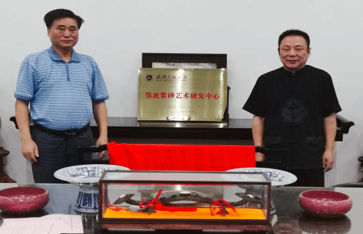 叶芃与江城先生共同为鄂派紫砂艺术研究中心揭牌,并代表公司致答谢辞,感谢江城大师用紫砂展现楚文化之美,呈现紫砂在当代的人文精神,以此推动当代紫砂艺术的发展,弘扬中国传统文化。304am永利鄂派紫砂艺术研究中心将为公司师生提供优质的研学资源。