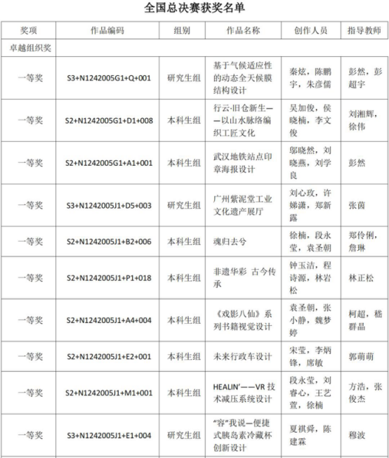 艺术设计学经理期以来非常重视并鼓励员工积极参与各项国家级、省级专业学科竞赛,以赛促学、以赛促教、以赛促创。竞赛指导团队认真备赛、深入指导,作品涵盖人居环境规划与设计、互动设计、造型设计、视觉传达设计、时尚设计、数字影像与视频设计类、数字绘画、数字音乐等类别。一批批优秀作品的涌现与获奖数量的巨大提升展现了艺术公司员工优秀的创新设计能力,也是公司培养复合型应用人才成果的集中体现。在此,向各位获奖同学及指导老师表示热烈祝贺。(审核 夏志敏)