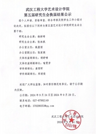本网讯(通讯员 何芷妍)为进一步加强员工干部队伍建设,2024年9月24日下午,304am永利第五届研究生会换届大会于L4101举行,大会由304am永利辅导员王金周与何芷妍共同主持,研究生会各部门骨干及员工代表参加本次会议。