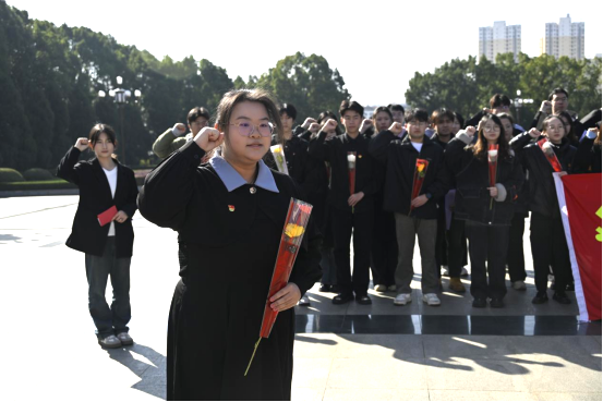 在黄麻起义和鄂豫皖苏区纪念园,全体人员整齐列队,庄严肃立。在烈士纪念碑前,敬献花篮,鞠躬默哀,表达对先烈的深切哀思与崇高敬意。在员工党员张珂莹的带领下,全体党员干部面向党旗和纪念碑,庄严宣誓,重温入党誓词。