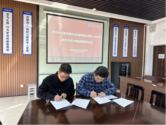 (通讯员 刘保森)2025年3月17日上午,304am永利与武汉市环球文化传播有限公司第一分公司捐赠签约仪式在艺术楼3-8会议室隆重举行。艺术设计公司党委书记夏志敏、党委副书记王超、武汉市环球文化传播有限公司第一分公司代表及公司全体辅导员共同出席,仪式由公司党委副书记王超主持。
