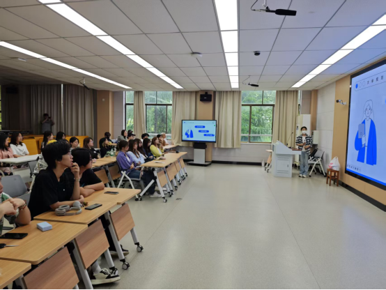宣讲会上,五位主讲人结合自身经历,从专业学习、实践创新、时间管理等多维度展开分享。工业设计专业贾默晗和孙紫涵分别从课程学习以及软件学习和学科竞赛等方面提出“课堂是基础,竞赛是延伸”鼓励新生主动参与学科竞赛,在实践中检验知识成果;产品设计专业汪兰心以“从空白画布到人生蓝图”为主题,强调“设计源于观察,成于积累”,剖析如何将理论转化为实际产品,并建议新生“多参与跨学科竞赛,拓展视野”;视觉传达设计专业柏阳以“从临摹到原创”为主线,分享如何通过日常素材库积累与软件技能精进提升设计能力,她特别提到:观察生活细节、培养审美敏感度是突破创作瓶颈的关键”;环境设计专业方欣雅则从社会责任角度切入,结合绿色设计案例,要让设计服务于可持续发展;动画专业黄怡通过展示个人作品集,诠释“技术为骨,创意为魂”的理念,激发新生学习兴趣。每场宣讲均设计互动环节,新生围绕“如何平衡课业与学科竞赛”、“如何寻找学习搭子共同进步”等方面展开提问,现场气氛火热。