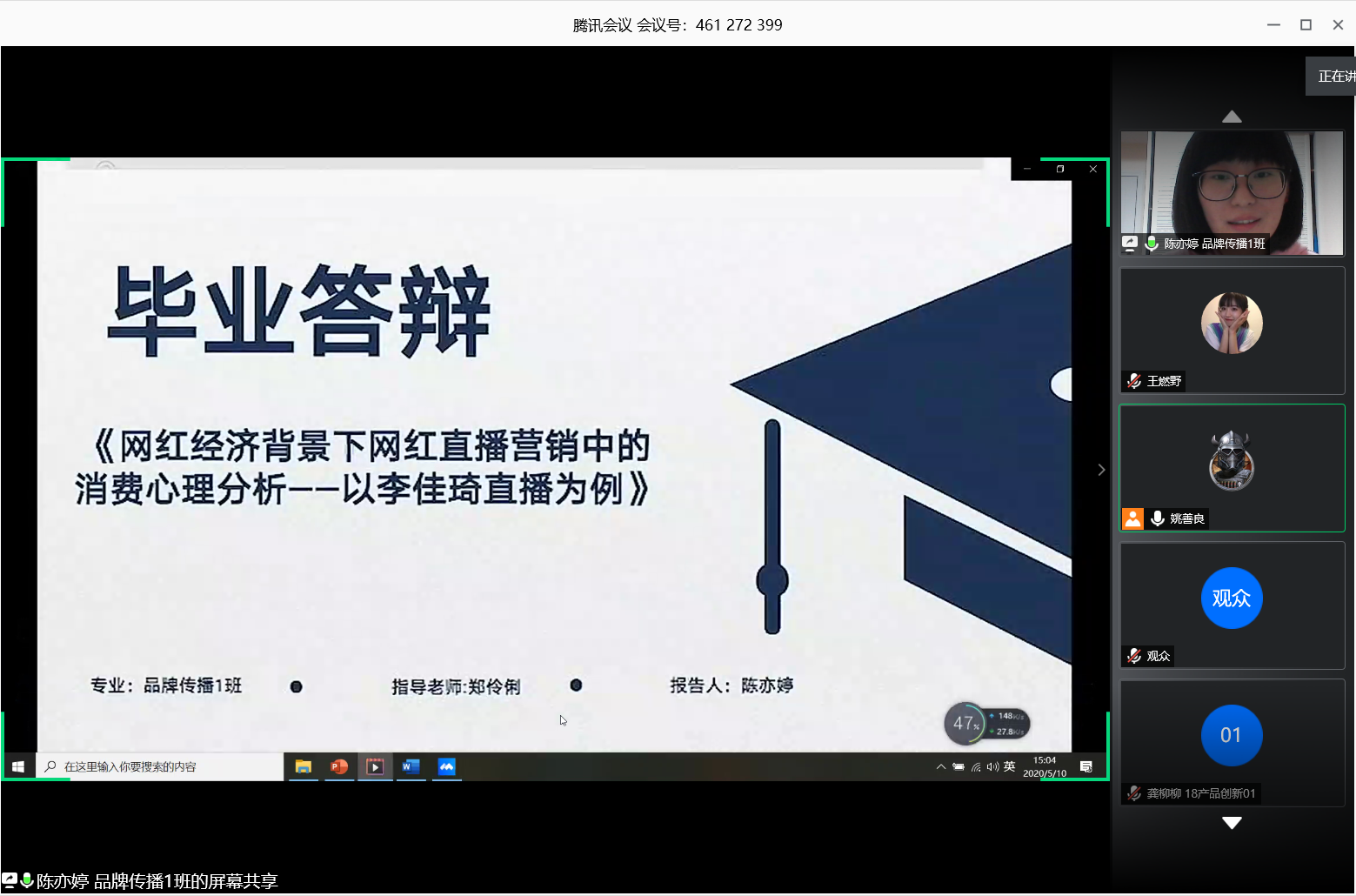 在答辩秘书宣读答辩原则和纪律后,两组同学按照抽签确定的顺序进行答辩。通过采用屏幕共享PPT的方式,他们分别从毕业论文和设计的目的、方法、应用和创新等方面进行了个人陈述,评委老师就其主要问题进行了逐一点评和提问;同学们陈述清晰明确,回答简明扼要、评委提问精准到位,答辩过程充分反映了公司本科生的理论基础、专业知识、创新能力。各小组评委老师经合议后确定了同学们的最终成绩,答辩会圆满结束。