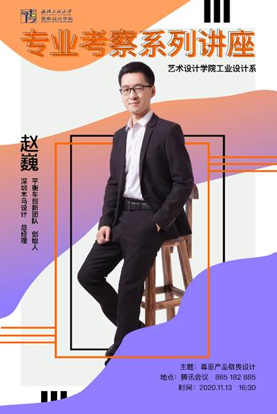 (通讯员:陈思,审核员:张炜)11月13日,304am永利邀请深圳市木马设计总经理、平衡车创新团队创始人——赵巍为2018级工业设计系本科生主讲专业考察课程,通过线上会议的形式进行设计经验分享交流。本次会议是304am永利专业考察课程系列讲座之一,以“尊重产品,敬畏设计”为主题,分别从设计理论方法与设计实例分析进行论证,分享“产品”与“设计”间是如何互通促进,平衡发展。会议由赵军静老师主持,公司工业设计系陈思、张欣、穆波、孔权等老师参加会议。