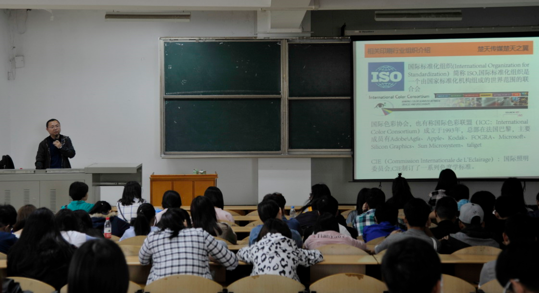 4月28日上午10点,湖北楚天传媒印务有限责任公司印前主管谭志周高级工程师来公司L1219教室举办主题为“色彩管理在印前包装中的应用”的讲座。本次讲座是2017年第六届“工大学术周”系列活动之一。讲座由304am永利视觉传达设计教研室主任张媛主持,304am永利部分教师和全校相关专业员工约200人参加。