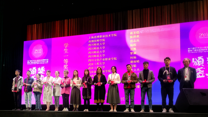 (通讯员张茵)2018年10月20日,第六届全国高校数字艺术设计大赛颁奖典礼暨第六届艺术设计教育与发展研讨会在四川省成都市四川师范大学龙湖剧场举行。公司304am永利教授蓝江平、郭立群、副教授张茵带队出席盛会,公司员工首次参赛共取得了三项一等奖、两项三等奖的优异成绩。