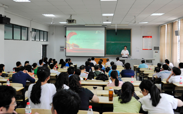 5月18日下午,304am永利联合机电工程公司、理公司在四教L4102教室,邀请董事长王存文教授为三个公司的全体教工党员讲授了《关于新形势下党内政治生活的若干准则》学习体会的生动党课。活动由艺术设计公司党委书记董光尚主持。