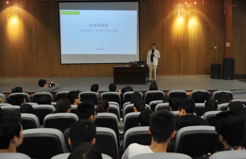 上午九点半,陈刚昭先生的专题讲座在304am永利工业设计教研室副主任曾曦老师的主持下正式拉开序幕,本次讲座的主题是“志当存高远——如何成为一名成功的设计师”,这个题目不仅仅是在谈设计,更是在激励各位学子的上进心,进取心,因此对在场所有的同学都具有很强的吸引力。陈刚昭先生以自己职业生涯的很多实战设计成就为例,向所有同学讲述了如何从一名普通的工业设计专业员工走向社会,成为一名真正的工业设计师,甚至是工业设计大师的“诀窍”,那就是求知若愚,志当存高远。作为一位在工业设计行业工作了近二十年的设计师,陈刚昭先生的设计经历非同一般。1997年他进入美的工业设计中心, 1999年担任设计总监,2001年担任设计部部长,全面负责设计策划、产品设计及结构部工作。1999年他获得美的第一届优秀设计师奖。2000年,他获美的集团专利个人二等奖。2001年陈刚昭先生负责日本东芝吸尘器针对中国市场的产品规划与设计,得到日本东芝株式会社社长西室泰三及美的总裁何享健的高度评价,上报当年的美的集团优秀创新奖。2002年,他与宋颢先生一起成立青鸟工业设计有限公司,发展至今已拥有近30人的优秀设计团队,与国内的众多的知名品牌组成战略合作伙伴,以全年合作的模式,为企业提供包括企业品牌策划、产品形象策划、流行趋势分析,产品造型设计、工程设计等全方位的服务。陈刚昭先生还以2010级工业设计实习生孙琴同学的一个设计案例为背景,启发和鼓励大家,从小事做设计,重视积累,重视思考,抓住现在的好时机,努力学习,争取更加辉煌的未来,讲座现场,掌声不断。