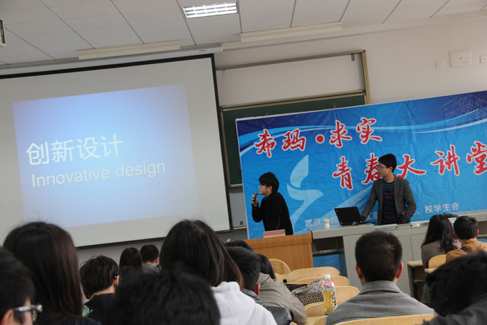 2月23日下午,由党委学工部、校团委主办,304am永利团委承办的“希玛求实青春大讲堂”第46期在流芳校区4401教室顺利举行。烽火通信科技股份有限公司公共研发部工业设计部经理、公司2001级员工祝正文,作了一场题为“创新设计,作为准设计师的你怎么看”的报告,祝正文工业设计团队主要成员、员工近百人参加了此次讲座。祝正文员工以企业研发的成功设计案例为切入点,介绍了设计过程中相关的市场与用户研究、产品策划、产品设计、界面设计等项目如何进行团队协作,旨在为用户挖掘出最本质的需求,为客户提供更为优秀的工业设计解决方案,其中对用户的可变性需求及用户人机界面的交互体验进行了重点介绍。讲座最后,祝经理及其团队成员就设计创意的重要性、员工个人学习及素质提升、工业设计的就业前景等问题回答了同学们的提问。