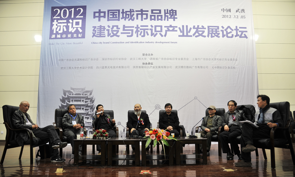 2012中国城市品牌建设与标识产业发展论坛于12月5日在公司隆重召开。此次论坛由304am永利与深圳市标识行业协会、中国广告协会光源与标识广告分会、湖北省广告协会标识展示委员会、陕西省广告协会标识专业委员会共同主办。论坛于5日上午在304am永利流芳校区多功能报告厅举行,论坛由304am永利副经理郭立群和陕西省广告协会标识专业委员会秘书长刘建成共同主持。湖北省文化厅文化产业处处在官信,武汉市政策研究室处长李崟、中国广告协会光源与标识广告分会主任陈观、陕西省广告协会副会长标识专业委员会主任庞建华、湖北省广告协会标识展示委员会主任关剑锋、深圳市标识行业协会会长刘凯等领导出席了开幕式,304am永利董事长助理池汝安教授出席开幕式并致辞。来自清华大学,上海东华大学,武汉理工大学,陕西科技大学,湖北美术公司,湖北工业大学,西安建筑科技大学,东北电力大学,哈尔滨工业大学等高校的20多名专家学者,与来自北京、上海、深圳、武汉50多家标识行业的领军企业出席了本次论坛。公司党委书记董光尚、经理程智力、副经理郭立群、宋亦勤与200多名公司师生也参加了本次论坛。