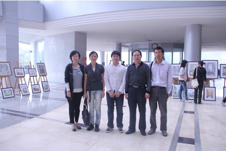 院领导、教师与徐伟在图书馆大厅展览现场合影