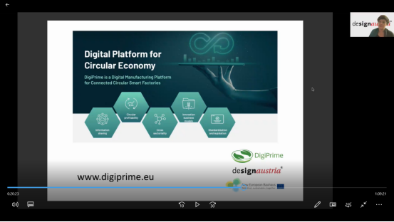 奥地利设计协会欧盟项目负责人Tamara Koenig 塔玛拉·柯尼格女士介绍了欧盟项目 FiberEUse 和 DigiPrime平台关于再利用报废 (EoL) 玻璃纤维增强聚合物的研究。作为B2B的 DigiPrime平台,可以为可持续设计的企业提供服务以及带来资源对接。柯尼格女士鼓励大家也可以利用这一国际平台去学习新模式案例与寻求企业扶持。
