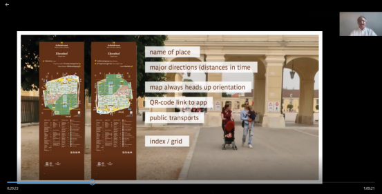 首先,由欧洲设计协会秘书长、奥地利设计协会主席、国际信息设计协会副主席Martin Foessleitner马丁·福斯莱特纳先生分享维也纳美泉宫导视系统设计,从三钻研究模型着手,通过对不同访客群体的调研,最终确定了导视系统从“可视”到“不可视”转变的设计思路。