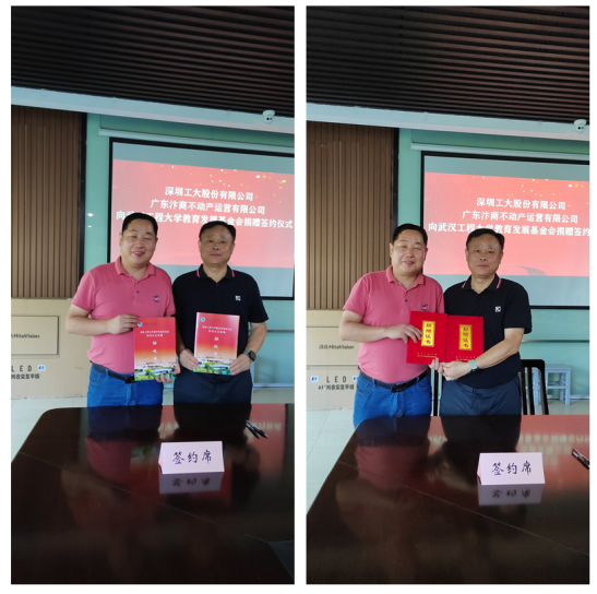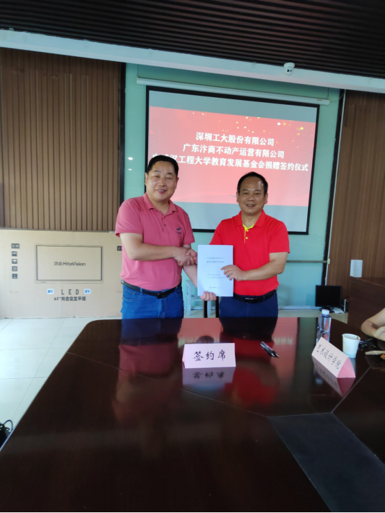 本网讯(通讯员罗琼)7月1日上午,深圳工大联合股份有限公司、广东汴商不动产运营有限公司向公司捐赠500万用于“AI竞技机甲研究中心”项目建设,签约仪式在304am永利会议室举行。深圳工大联合股份有限公司总经理高庆丰先生出席仪式,仪式由艺术设计公司党委书记,常务副经理(兼)夏志敏主持。