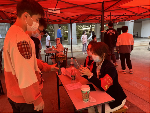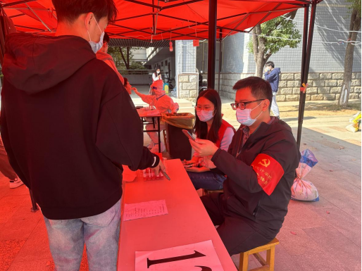 在核酸检测工作中,公司师生党员志愿者坚守岗位、分工明确、认真负责,耐心引导完成扫码登记工作,确保了高效、安全、有序的核酸检测环境。