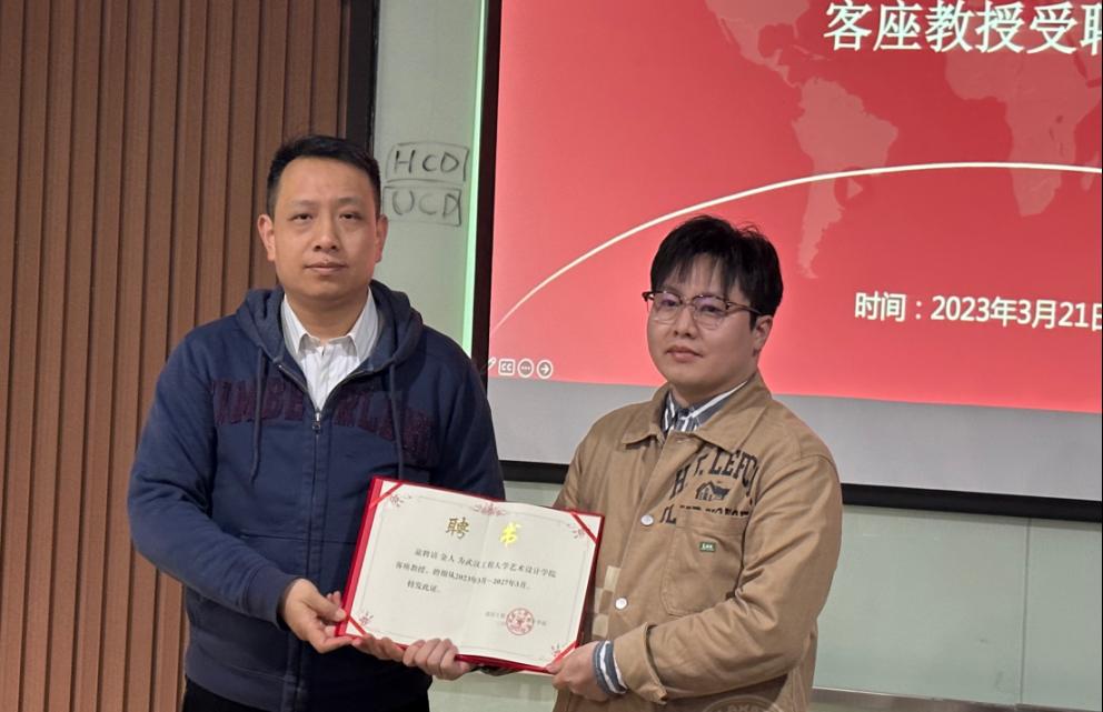 桂宇晖为完美世界上海游戏部美术经理金人颁发了客座教授的聘书,金人教授以后将作为企业导师参与本科教学及公司产品工作。