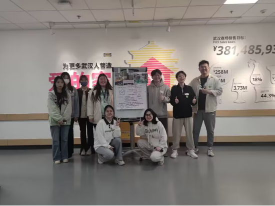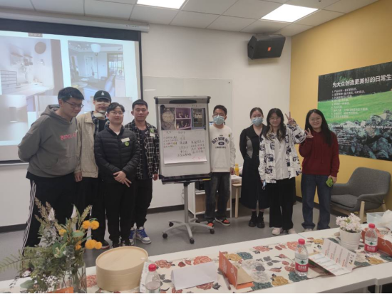 经过2个小时的模拟购物探索后,在接待室里,公司学子进行小组讨论后推选出优秀代表分别对宜家商场里的产品性价比、可持续化、造型、顾客感受以及宜家服务等方面进行了设计、总结、讲解,各组员工与作品进行了合影留念。