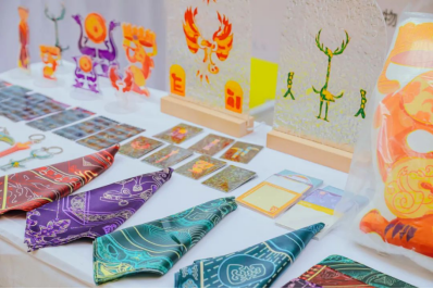 “在本次活动中,我感触最深的其实不在于售卖,而在于与大众面对面沟通交流豆面印花的过程。我展示的作品是围绕一个即将失传的非遗——豆面印花进行创作的,在展示过程中我发现大家对豆面印花其实是好奇的,大部分来到我的展台前的人们在听我介绍豆面印花的故事时都是一种较为投入的状态。”动画系20级黄小浔说,“非常感谢荟聚与动画系提供了这样一个机会,让我的作品直接展示在大众面前,我也会继续努力让我的作品更加丰富更加完善。”