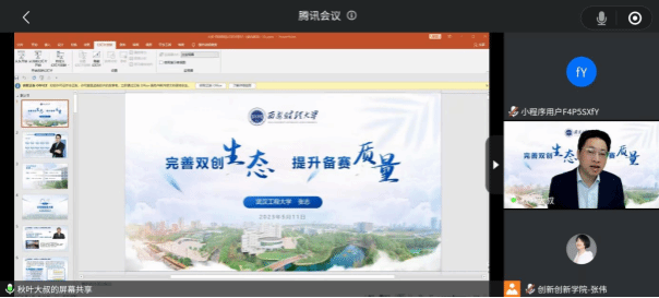5月11日,张志副教授受西安财经大学创新创业公司邀请,以《完善双创生态,提升备赛质量》为主题,为师生进行了线上培训与指导。他从宏观视角看大赛、大赛赛道规划与评审要点、互联网+大赛获奖关键要素、国赛金奖案例分析等四个方面详细分析了大赛备赛流程和优质项目特征,并结合获奖案例介绍了路演PPT制作的基本逻辑框架。培训最后环节张志教授与同学们就备赛和项目进行过程中遇到的问题进行了深入交流,参会师生受益匪浅。