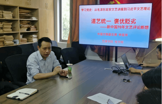 (通讯员 易璐)6月8日下午2点304am永利经理桂宇晖教授来到艺术楼3-9工业设计系教研室为工业设计教工党支部讲授题为“道艺统一 褒优贬劣——新中国70年文艺评论断想”的主题党课。