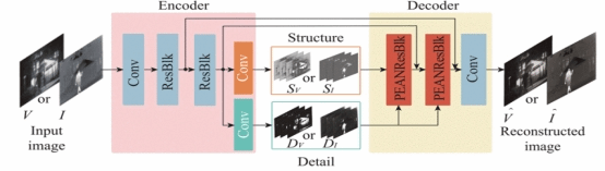 图像融合技术旨在将不同类型传感器采集的图像中的互补信息融合到单幅图像中,以对成像场景进行更全面的表征并促进后续的视觉任务,在计算机视觉领域中具有广泛的应用,红外与可见光图像融合是具有代表性的融合任务之一。目前基于特征解耦的方法在重建步骤中多简单地采用级联融合策略,没有探究和利用不同特征之间的关系,只能通过损失函数的引导进行融合,导致融合效果不理想,例如热红外目标的显着性降低和细节纹理的分辨率较差。为了解决这些问题,我们提出了一种新颖的融合网络,将源图像分解成源不变结构特征和源特定的细节特征,并利用条件归一化机制,将细节特征作为外部条件信息注入到结构特征中,以实现对特征图上每个激活点在空间上的精细调制。定性和定量实验都证明了我们的方法相对于当前最先进方法的优越性。