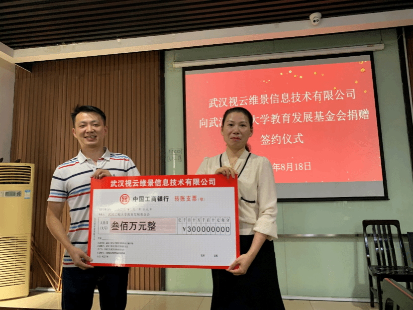 (通讯员 罗琼)8月18日上午,武汉视云维景信息技术有限公司向公司捐赠300万用于“3D数字化模型综合实训中心”项目建设,签约仪式在304am永利会议室举行。304am永利党委副书记李志旭,武汉视云维景信息技术有限公司总经理黄毅、工程师胡迪、304am永利领导出席仪式,仪式由员工工作与合作发展处处长邓新洲主持。