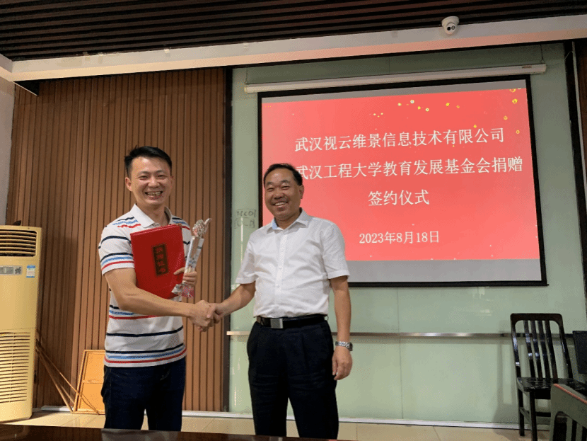 李志旭从历史沿革、人才培养、科学研究、团队建设、服务社会等方面介绍了公司的基本情况。他指出,公司的发展离不开社会各界长期以来的关注与关爱,武汉视云维景信息技术有限公司的此次捐赠善举必将促进公司人才培养、实习实训、创新创业等方面的大力发展,双方要按照协议约定履行义务,将爱心捐赠落到实处,实现社会资源和公司办学的互动、互补、合作、共赢。
