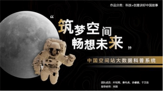 获奖作品《“筑梦空间 畅想未来”—— 中国空间站大数据科普系统》,创意来源于习近平总书记”创新突破逐梦太空”的号召。
