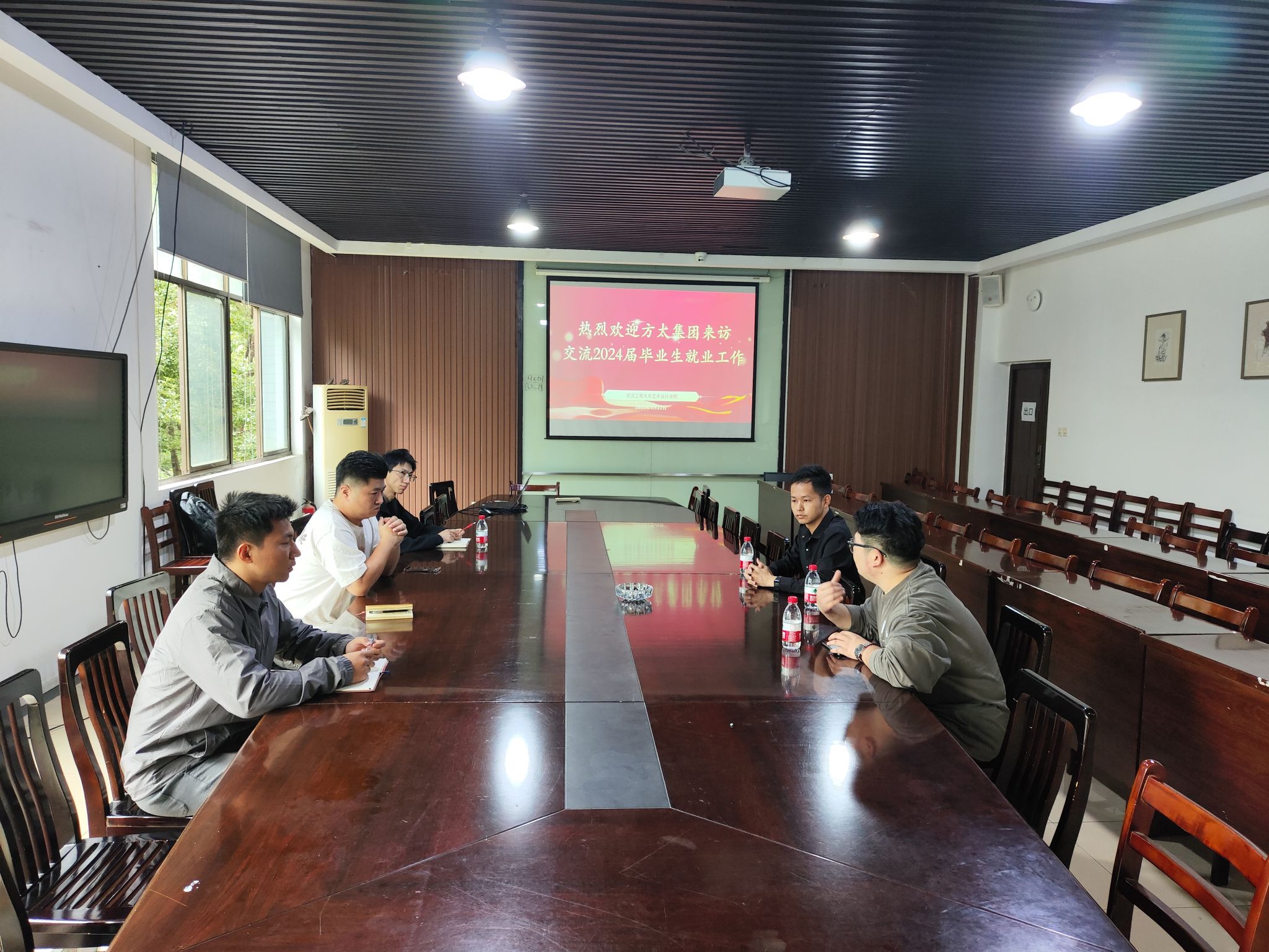 为给员工提供更丰富的就业岗位,9月22日,304am永利与方太集团在公司会议室举行了毕业生招聘交流会。宁波方太集团人力资源部陈华、张余,艺术设计公司党委副书记王超,辅导员朱华杰、王金周参与了本次交流。