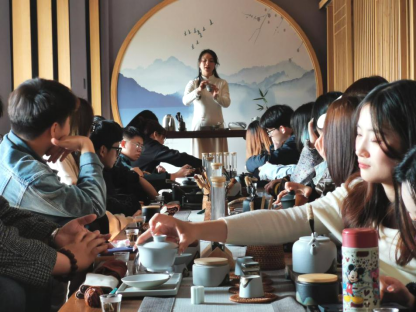 茶艺课程中,员工们学习了陆羽《茶经》及茶的起源、茶的不同种类、茶具的组成与命名,以及基本的茶艺礼仪。中国六大茶叶种类分别为:绿茶、白茶、黄茶、青茶、红茶和黑茶,它们之间最重要的区别在于发酵程度的不同。课程结束后,同学们四至六人一组在老师指导下进行了茶礼、茶叶冲泡及品茗的体验活动。