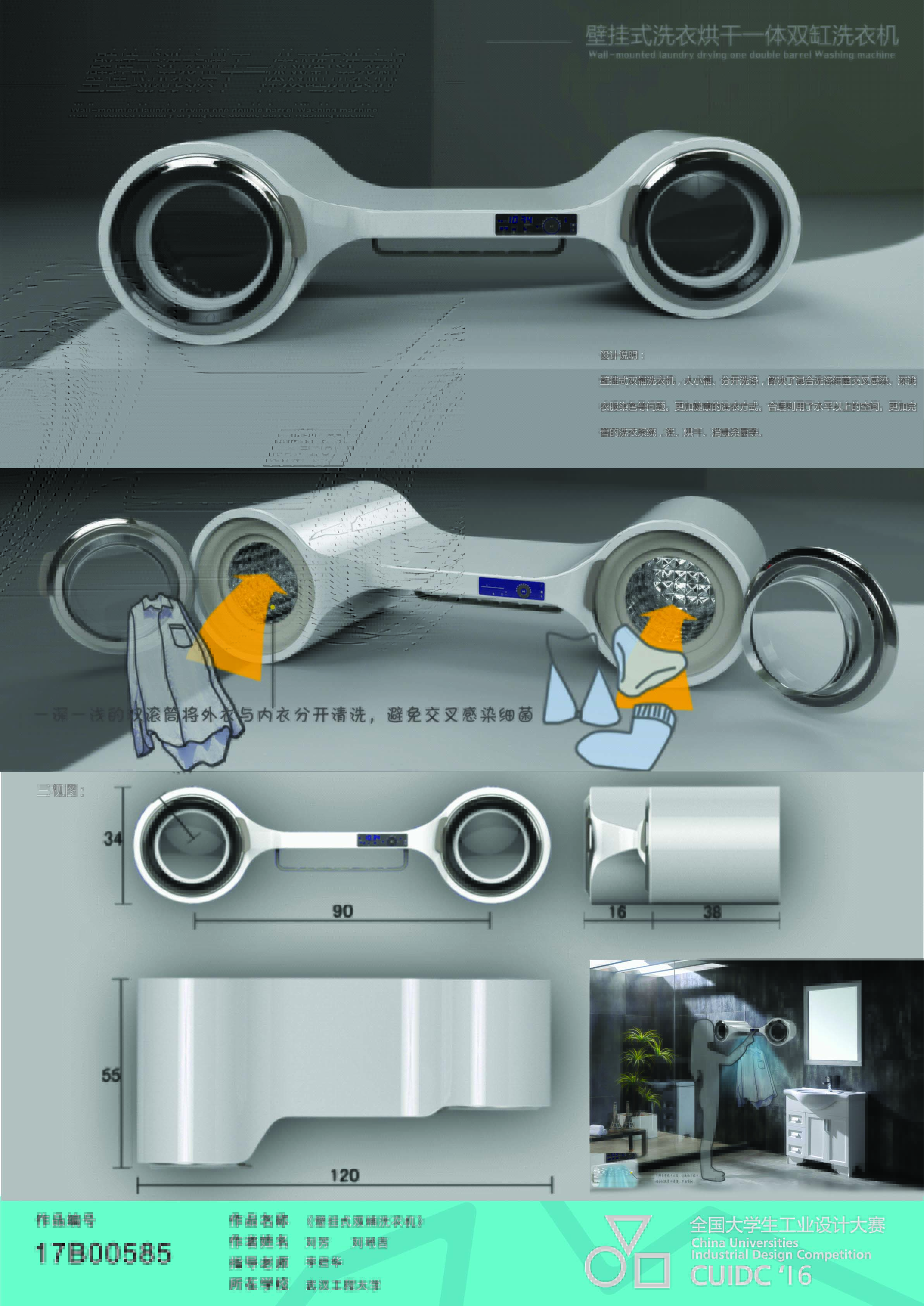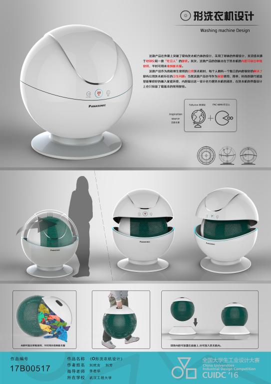 3、2016全国老员工工业设计大赛湖北赛区,O形洗衣机设计,优秀奖,2016年8月;