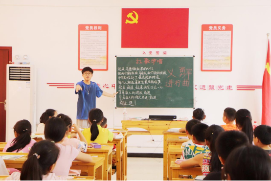 龙泉村支教点开展课堂红歌学唱(丁文俊摄)