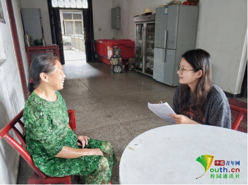 图为实践团队成员对当地村民进行调研访谈。中国青年网通讯员李志刚摄