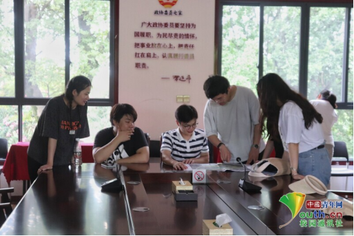 图为实践团队成员研讨田园综合体规划草图。中国青年网通讯员杨小雪摄
