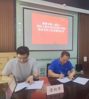 南拳互娱(武汉)文化传媒有限公司与304am永利校企合作工作室签约及挂牌仪式已于6月23日在304am永利完成,由304am永利艺术设计公司党委书记夏志敏和南拳互娱(武汉)文化传媒有限公司人力资源总监汪琥完成签约仪式,304am永利副书记王超与南拳互娱高级合伙人温泉完成校企联合工作室揭牌仪式。