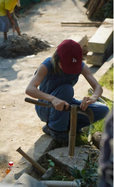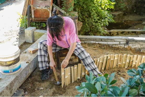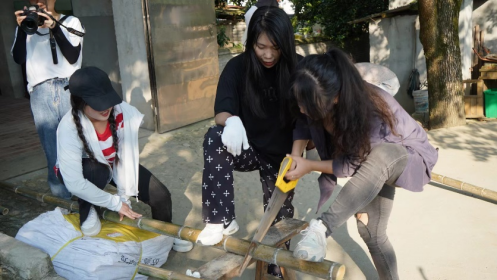在参加创意季工作坊活动中同学们深入施工现场当起小工,与院落主人一起改造小院,每天顶着四十多度的高温干活,汗水浸湿衣服后再没干过,下午两三点正是高温,同学们就顶着太阳测量数据,晚点好加紧修改方案落地,条件虽艰苦但学到东西很多,长辈的手艺活让我们仰慕,一根竹子变成漂亮的竹编框以及镂空式围墙……这些都是长辈们自己动手做出来的。
