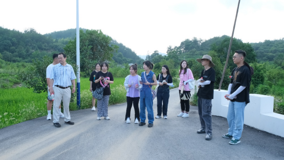 7月18日下午,在进行开营分组后,导师带领员工开始实地考察调研,沿路讲解乡建的设计理念与思路,在外38℃的高温,火辣辣的太阳照在身上,同学们依然在认真的记录这现场数据地形等,穿行在苍葭冲的巷道田野间,精准测量、构思、画图。