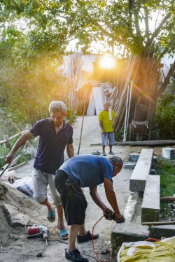 时间紧任务重,从开营分组到讨论交流,从实地勘察到征求意见,从考察调研到拿出设计方案,所有的共建人夜以继日和时间赛跑,同学与老师们每晚都进行项目汇报并修改,常常加班到深夜,有时都能听到早上公鸡打鸣同学们还没睡,有同学因高强度工作以及水土不服引发肠胃炎,发烧感冒,但都坚持下来只为能按时完成我们的工作,不耽误后面进程,最终完成了几乎不可能完成的任务。