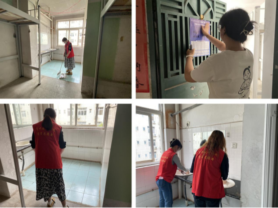根据新生宿舍楼层的分布,参与清扫的员工党员同志穿戴党支部志愿服,按照工作分工依次到相应宿舍进行卫生清扫、内部家具设备使用是否正常、相应物品是否齐全等情况,着重检查宿舍内插头插座是否有裸露电线等安全隐患,做好相应记录。在整个清扫过程中,员工党员们没有丝毫懈怠,力求做好迎新的第一步,新生宿舍窗明机净,舒适温馨。