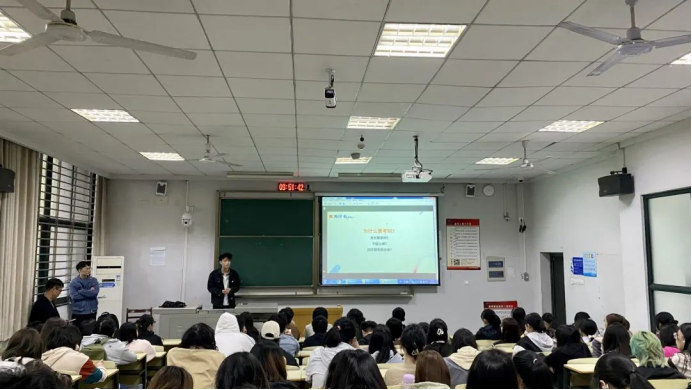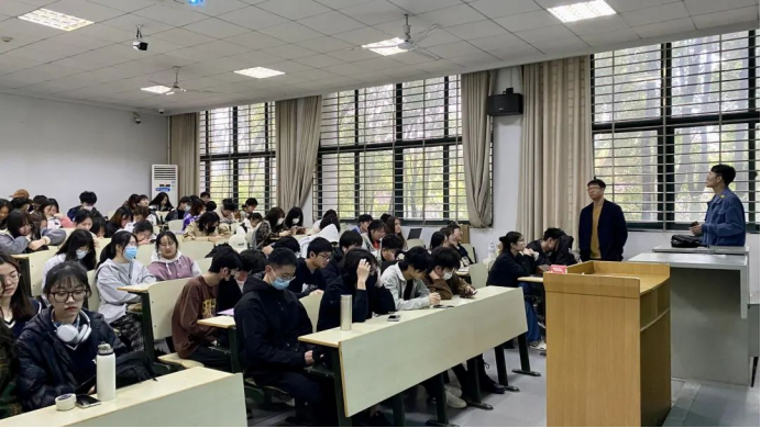 大会伊始,邱枫老师介绍开展这次考研分享会的目的以及意义,对考研途径、往年的考研情况等进行了分析。从各方面现实因素,谈到了考研的重要性,并鼓励同学们努力学习专业知识,进一步提升自身实力,实现人生目标。