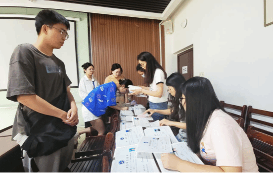 在学工办主任黄晶晶老师的带领下,张莲老师、甘晓辉老师与员工干部们对活动现场进行布置,将毕业证书及学位证书进行整理分类,根据不同班级分设多个学位证毕业证发放点,有效地提高证书的发放效率,以求尽快为毕业生完成信息登记,帮助毕业生取得来之不易的毕业证书和学位证书。